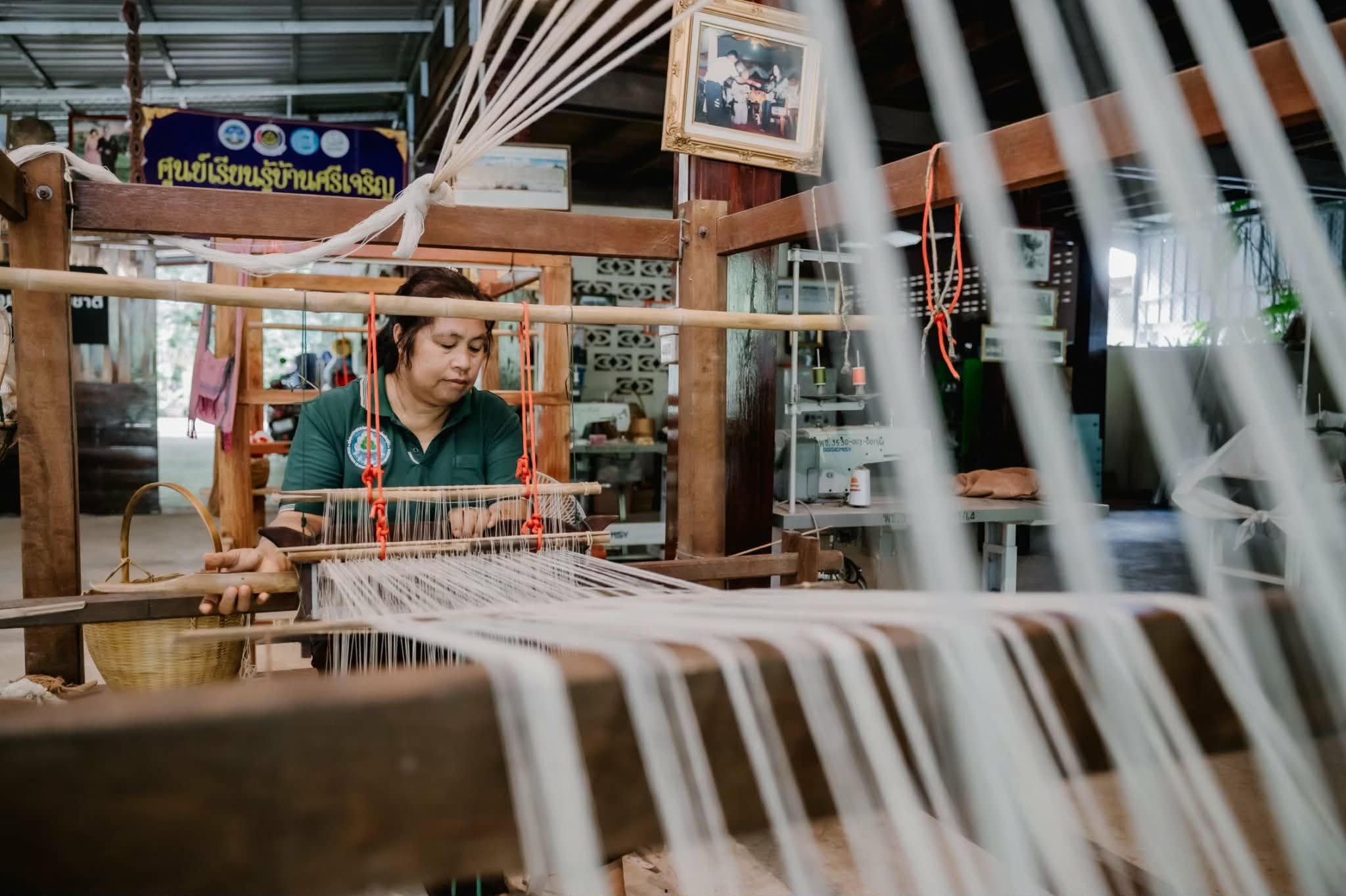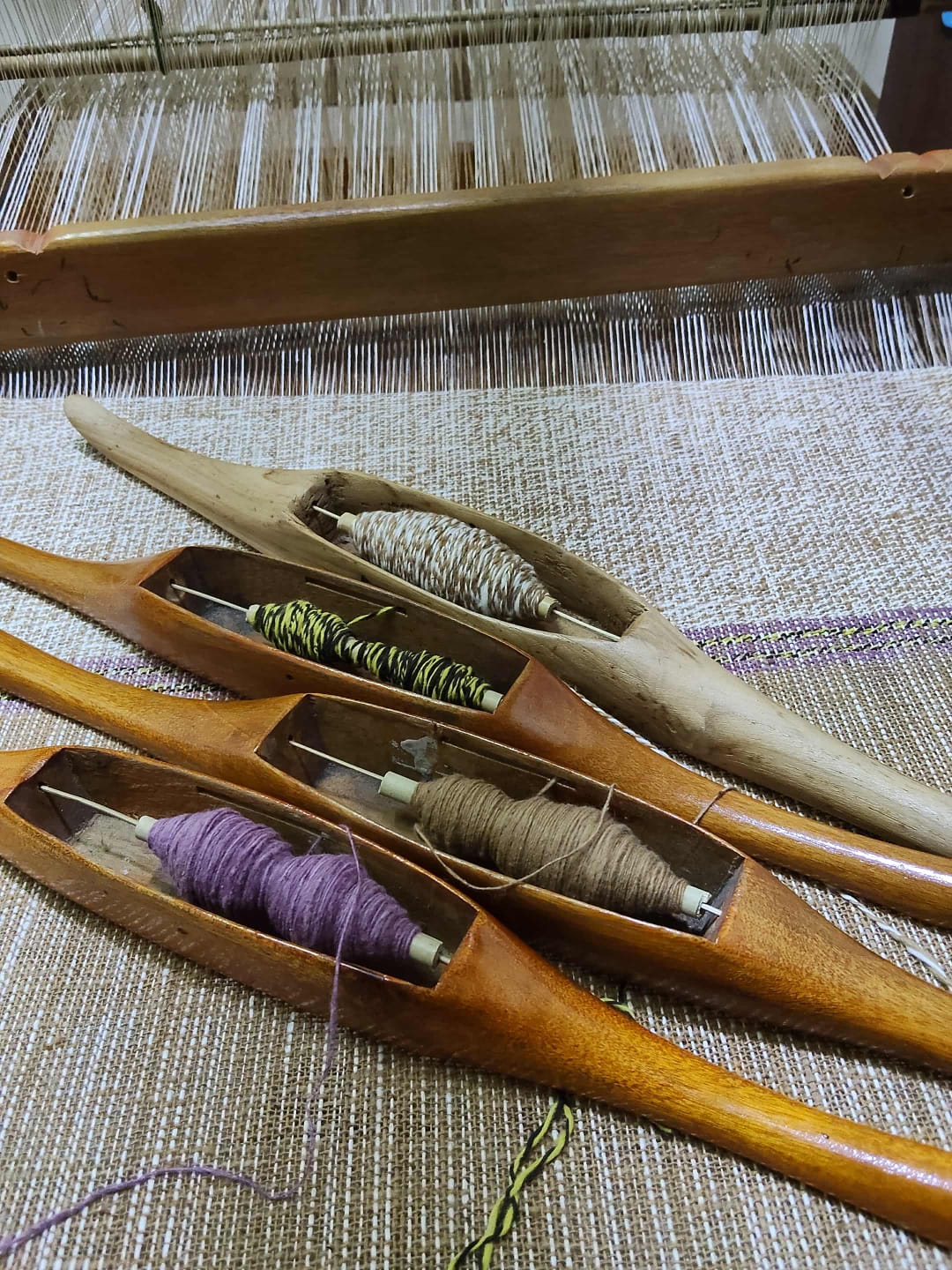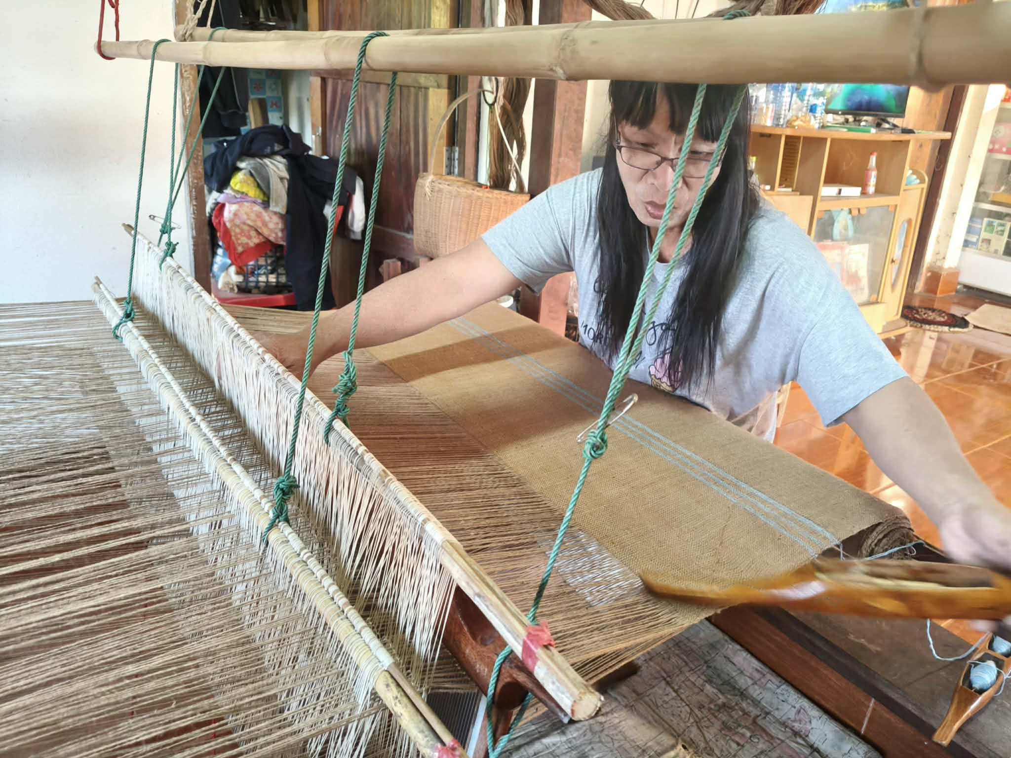 Nun entsteht Faden für Faden ein Stück Stoff.
